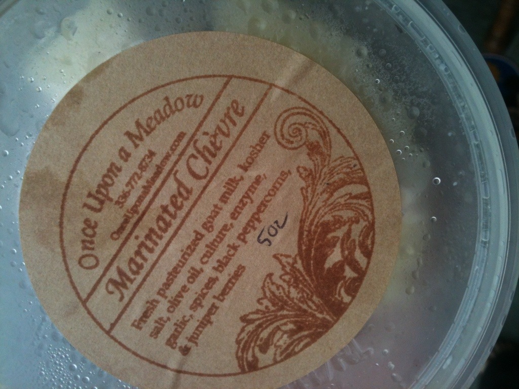 Alfredo Sauce: cream cheese, Parmesan (& Romano) cheese (grated &/or shredded) , milk/heavycream/halfandhalf (your preference of thickness) and usually we add minced garlic – but last night I used marinated [goat cheese] chèvre ! It was the PERFECT addition to our Alfredo – I will be using it from now on!!