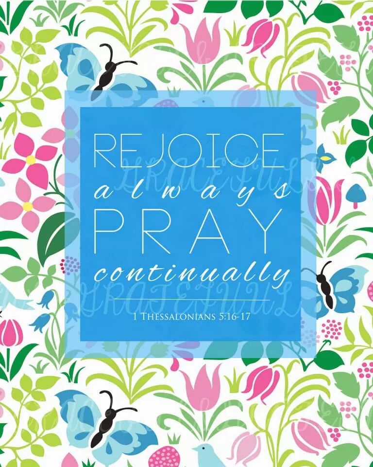 UncategorizedRejoice always, Pray Continually July 28, 2014 ashwallace “REJOICE ALWAYS, PRAY CONTINUALLY, ” 1 THESSALONIANS 5 : 16-17 Share this: Click to share on Facebook (Opens in new window) Facebook Click to share on X (Opens in new window) X Click to share on Pinterest (Opens in new window) Pinterest Click to print (Opens in new window) Print Click to email a link to a friend (Opens in new window) Email More Click to share on LinkedIn (Opens in new window) LinkedIn Click to share on Reddit (Opens in new window) Reddit Click to share on Tumblr (Opens in new window) Tumblr Click to share on Pocket (Opens in new window) Pocket Like Loading... Related Published by ashwallace View all posts by ashwallace
